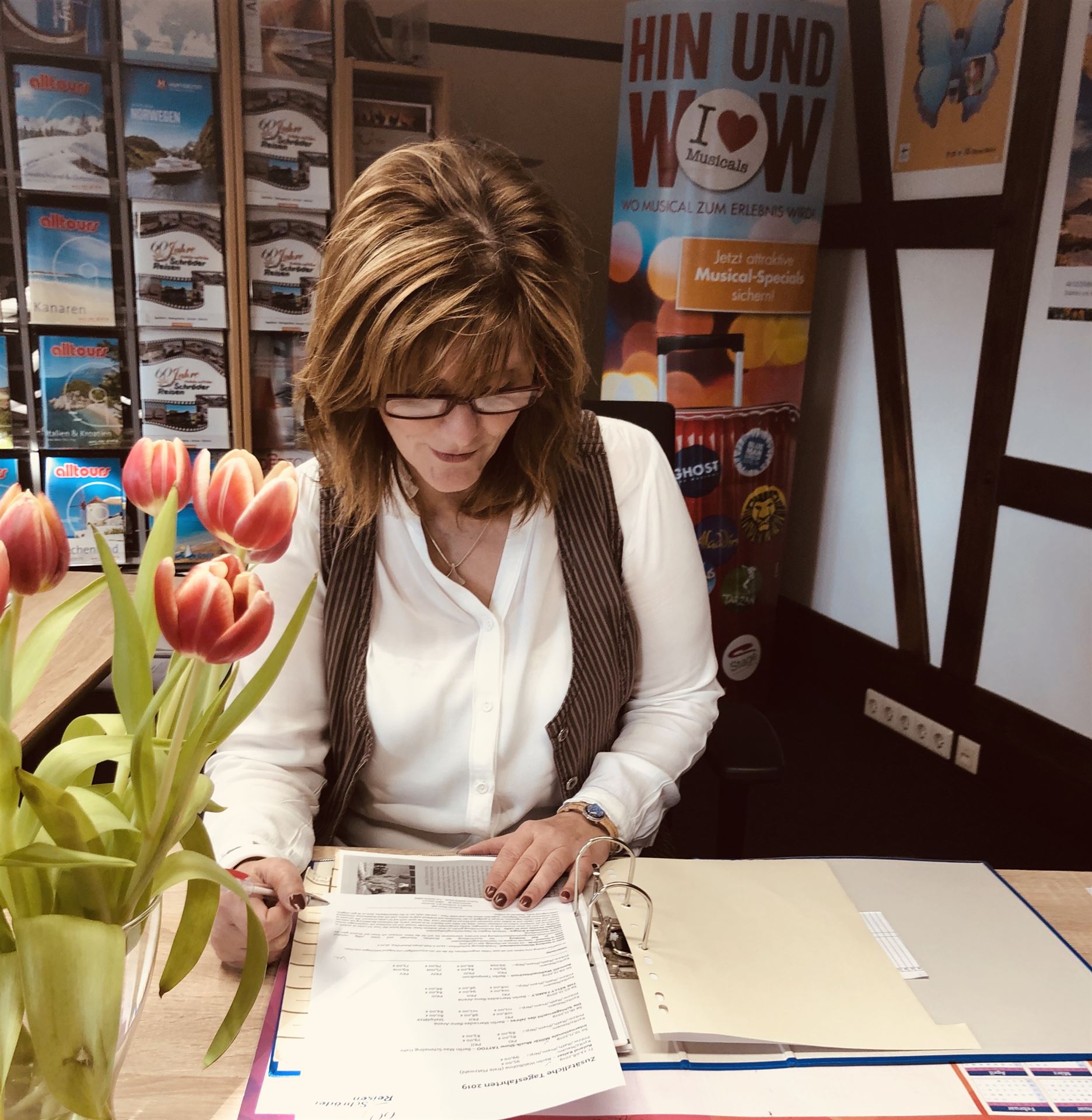 Ganz frisch dazu kam 2021 Frau Stolle. Sie unterstützt das Team hauptsächlich mit dem Planen und Organisieren der Tagesfahrten. Sie plant die Routen, erstellt Speisekarten und stellt sicher, dass jeder Gast im richtigen Bus sitzt und kann Ihnen über jede Abfahrtzeit und -ort bestens Auskunft geben. Außerdem kümmert sich Frau Stolle um das Tagesgeschäft - bei Ihr sind sie goldrichtig, wenn Sie Ihre Reise im Büro bezahlen wollen oder einen Gutschein bestellen möchten.