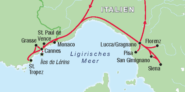 Genießen Sie einen Schiffsausflug zu den Lerinschen Inseln. Am Nachmittag besuchen Sie das mittelalterliche St. Paul de Vence, mit seinen verwinkelten Gassen.