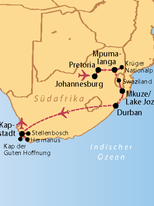 Weiterflug nach Johannesburg. Willkommen in Südafrika! Bevor Sie in Ihr Hotel in Johannesburg fahren, lernen Sie bei einer Stadtrundfahrt die Hauptstadt Pretoria kennen.